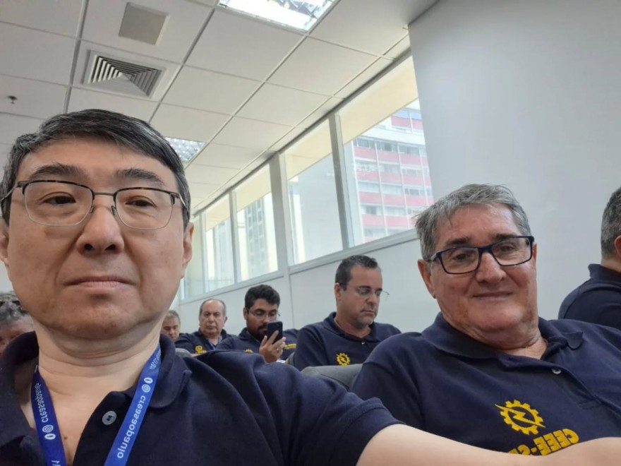 Ricardo Massashi Abe, representante do Sindicato dos Tecnólogos e conselheiro, e Antônio Carlos Catai, representante da Associação Paulista dos Tecnólogos (Atecnólogos), participaram da Reunião nº 655 da Câmara Especializada de Engenharia Elétrica (CEEE) do Crea-SP. O encontro aconteceu nesta sexta-feira, 5 de dezembro.