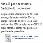 No caso dos tecnólogos, José Paulo Garcia destaca duas funções significativas da ART: uma financeira e outra de mostrar o número de profissionais tecnólogos registrados no CREA, por meio do número de ART emitidas. Segundo José Paulo, ao preencher a ART, há um campo no qual o profissional indica a entidade que representa ou que gostaria de dirigir. O número do Sindicato dos Tecnólogos do Estado de São Paulo é 126.