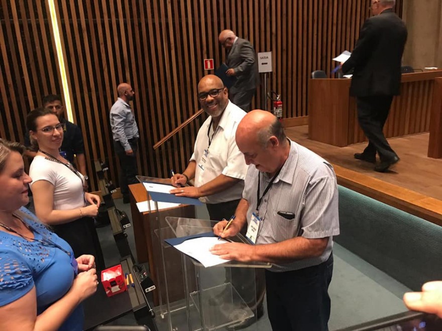 Os tecnólogos do Sindicato do Tecnólogos do Estado de São Paulo, Pedro Alves de Souza Junior (membro da diretoria) e Luis Carlos Gallo, foram empossados, nesta quarta-feira, 30 de janeiro, como conselheiros - titular e suplente, respectivamente - do Conselho Regional de Engenharia e Agronomia do Estado de São Paulo. Os profissionais atuarão na área de mecânica, representando o Sindicato. A cerimônia aconteceu na sede do Conselho, na capital paulista.