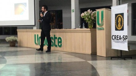 O tecnólogo Alvaro Diogo Teixeira, membro da Diretoria do Sindicato dos Tecnólogos do Estado de São Paulo e coordenador nacional do Programa Jovens Profissionais do Saneamento da ABES (Associação Brasileira de Engenharia Sanitária e Ambiental), participou nesta quarta-feira, 17 de abril, do 2º Ciclo de Palestras na Unoeste, em Presidente Prudente, interior de São Paulo.