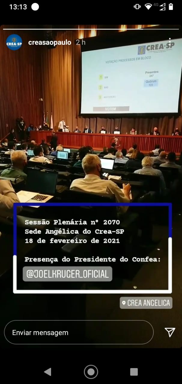 Nesta quinta-feira, 18 de fevereiro, Tecnolólogo José Paulo Garcia, membro do Sindicato dos Tecnólogos do Estado de São Paulo e membro do Grupo de Trabalho (GT) Regulamentação dos Tecnólogos, fez uma apresentação sobre a lei que regulamenta o exercício da profissão do Tecnólogo, durante Sessão Plenária do mês de fevereiro do Conselho Regional de Engenharia e Agronomia de São Paulo (Crea-SP).