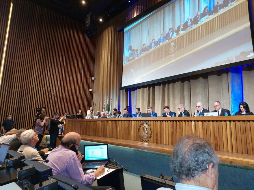 O presidente do Sindicato dos Tecnólogos do Estado de São Paulo, Pedro Alves de Souza Junior, e os conselheiros Ricardo Massashi Abe e Fernando Oliveira, marcaram presença na Sessão Plenária do mês de abril do Crea-SP, nesta quinta-feira, 20.